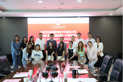 On June 14th, Professor Thitinan Chankoson from Srinakharinwirot University, Thailand, visited the college. Li Liqin, Chairman of the Trade Union, and relevant officials from International Cooperation Office, Student Affairs Department, and School of Digital Economy, as well as Thai students on campus greeted the professor.