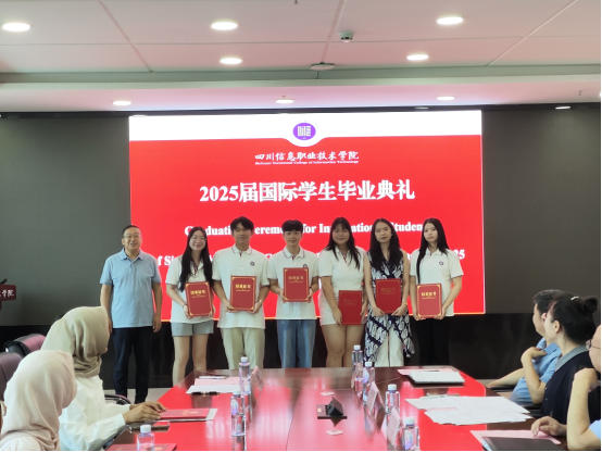 On the morning of June 13th, the graduation ceremony of the 2025 international students was held in Conference Room 0903 of the Comprehensive Building at Xuefeng Campus. Yang Huaming, member of the Party Committee and Vice President, attended the ceremony. Officials from College Office,School of Humanities (International Education Center), Security Department, Logistics and Infrastructure Management Department, School of Digital Economy, Xuefeng Police Station, teacher representatives, and all international students also attended the ceremony.